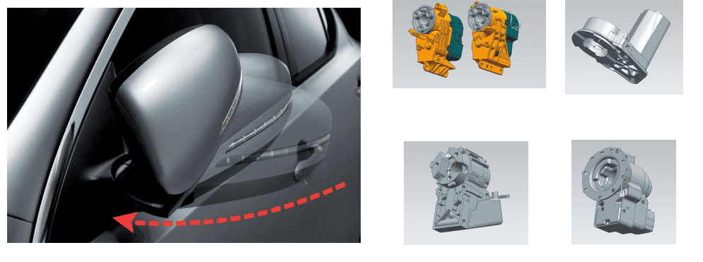 Mirror Power Foider is installed inside rear-view mirror and foradjusting the folding angle of rear-view mirror so that the human-ization function can be realized:folding and unfolding.